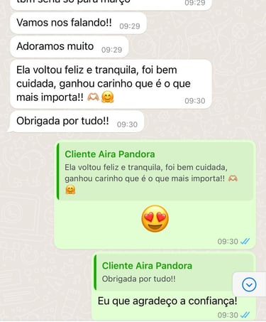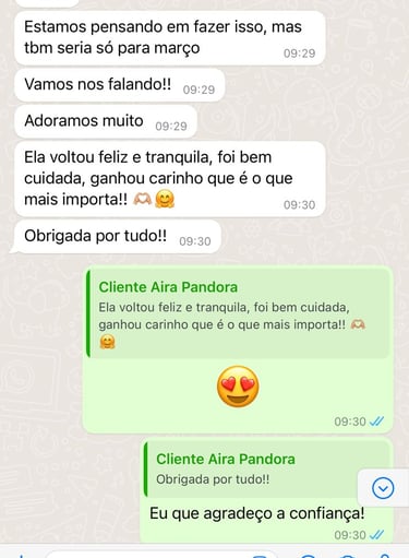 Além de hospedagem livre de gaiolas, oferecemos atividades de E.A (enriquecimento ambiental), administração de medicamento, escovação de pelos, aulas de comandos básicos, treinos de agilidade e muito mais!